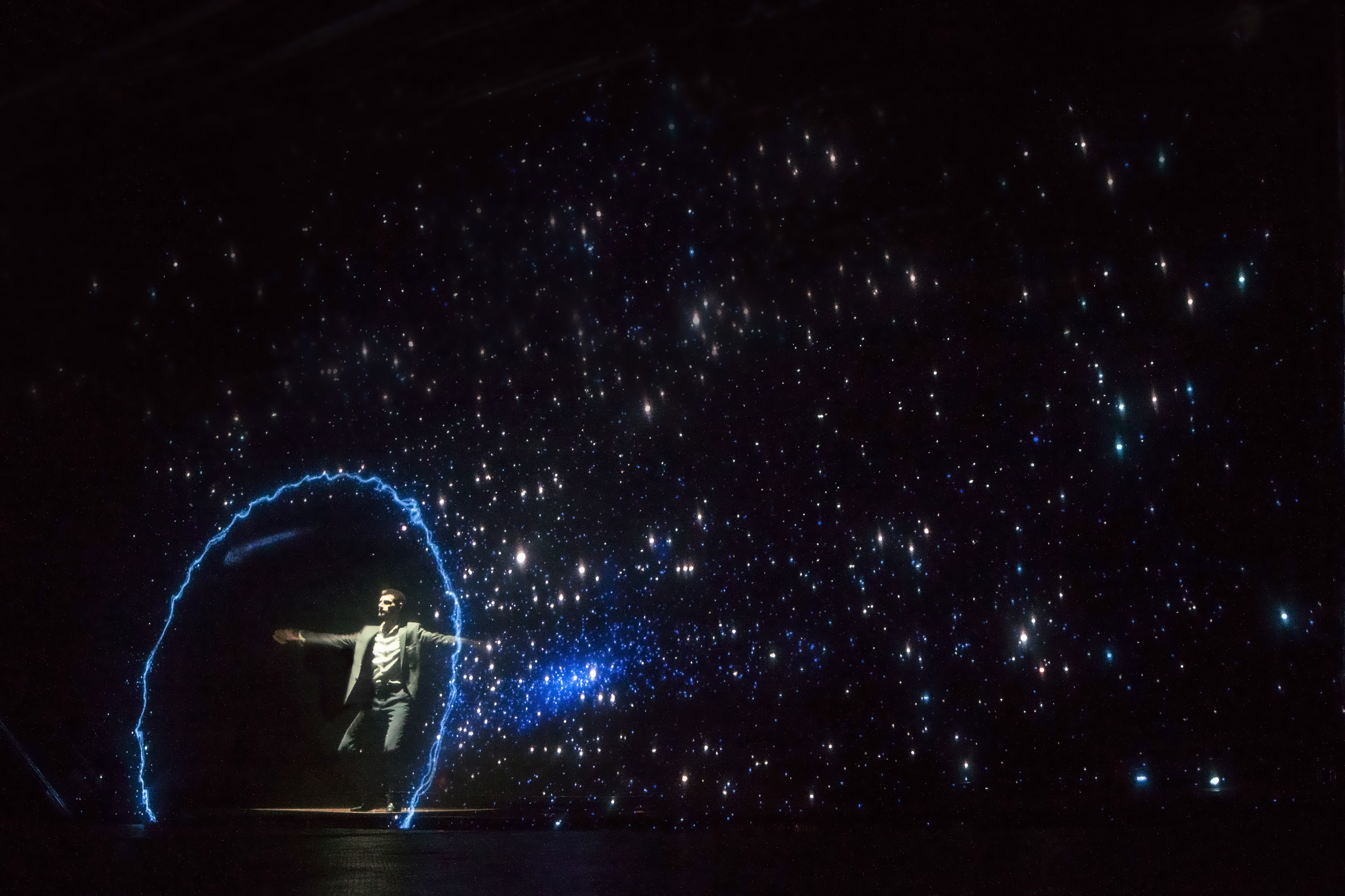 Video Projektai installed and successfully tested a holographic effect using a dedicated 6x4m film, LED, and projection screens.